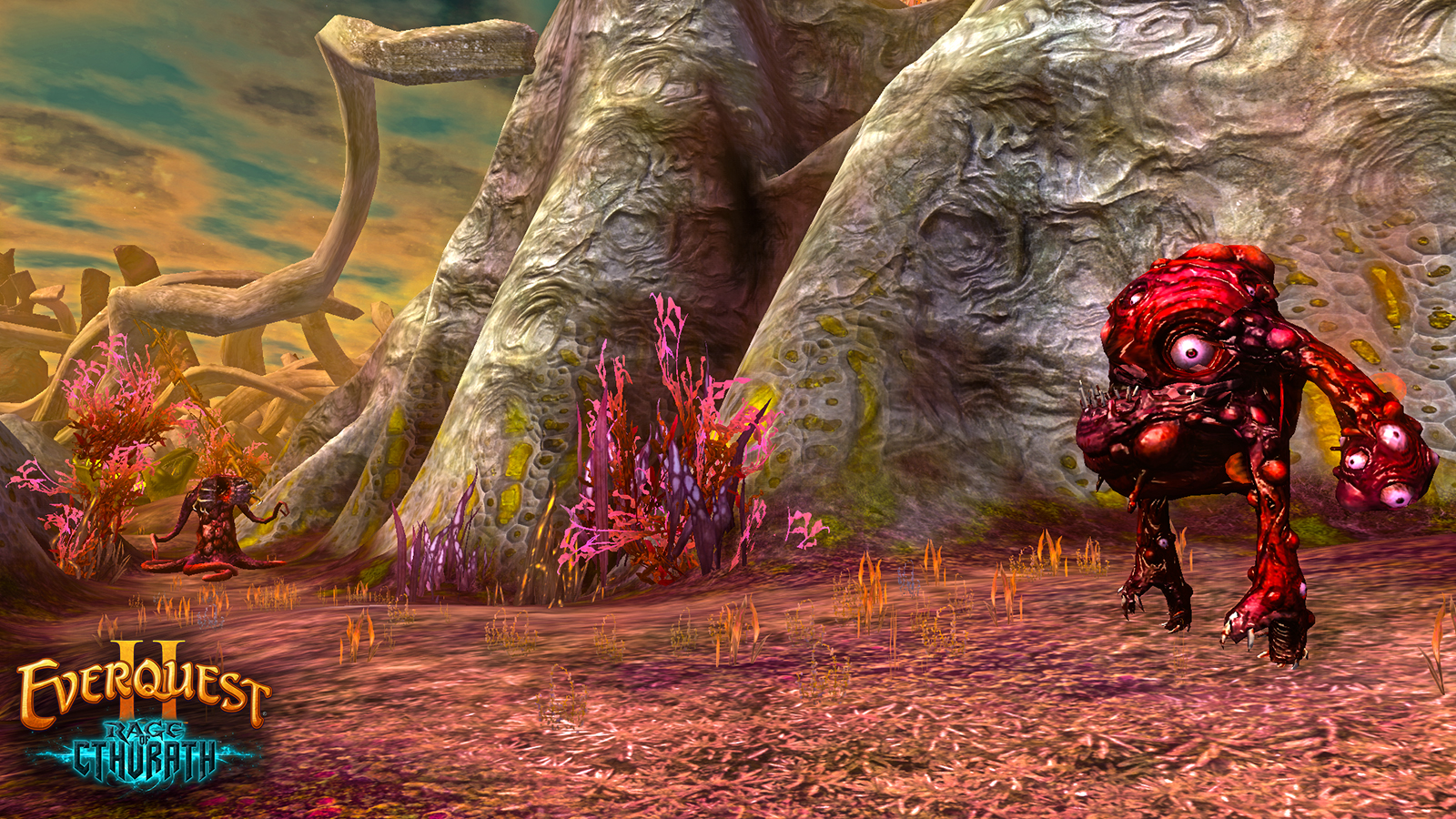 Found within the heart of the Xebrith Tendril region of the Void, this substantial landmass serves as the seat of power for the Oogothl Dominion and carries their name as a result. It is an unnatural assemblage of materials in a monstrous feat of biological manipulation and architectural design, in defiance of nature and mortal sanity. Every peak, gorge, mound, and mesa reflects the amoral gazer and evil eye empire, led by Dominar Zruul, and is filled with beasts of their own creation, creatures born of the Void, or doomed mortals from other dimensions. All manners of life must bend to their mercurial whims!